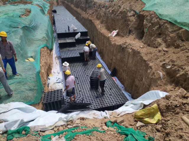 :一场降雨后,雨水白白流走,的确有点可惜。9月2日,记者采访得知,正在建设中的摄乐公园融入了“海绵城市”的设计理念,在上海虔丞环保设备雨水收集再利用方面创新做法:全园配建了140余处雨水收集井以及1000立方米的蓄水池,可有效收集雨水,并作为公园绿地浇灌的补充用水。